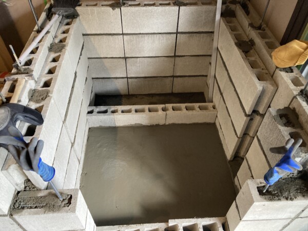 灰の処理対策にはアッシュピットをを組み込み施工して